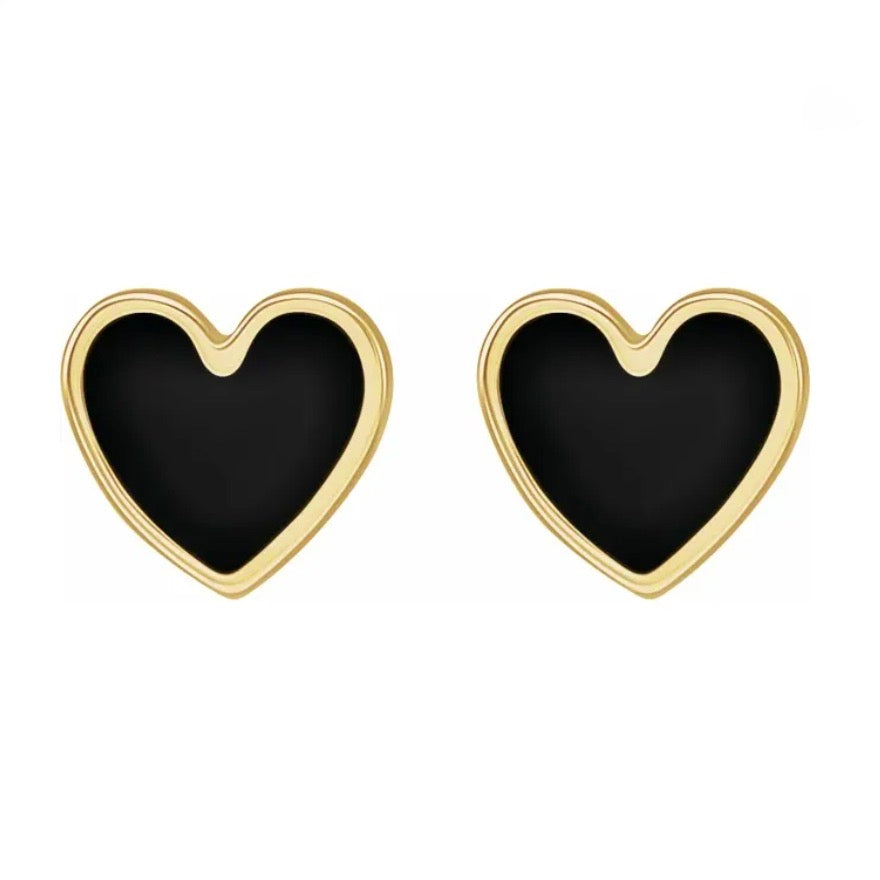 Sweet red heart studs in black enamel set in 14k yellow gold.