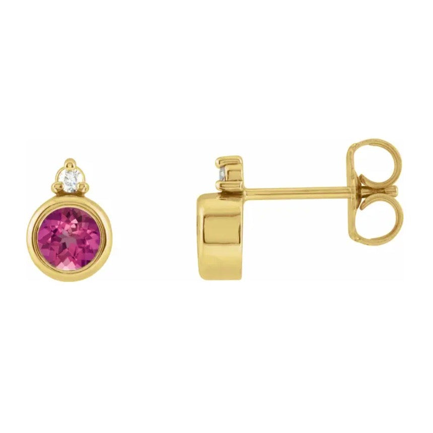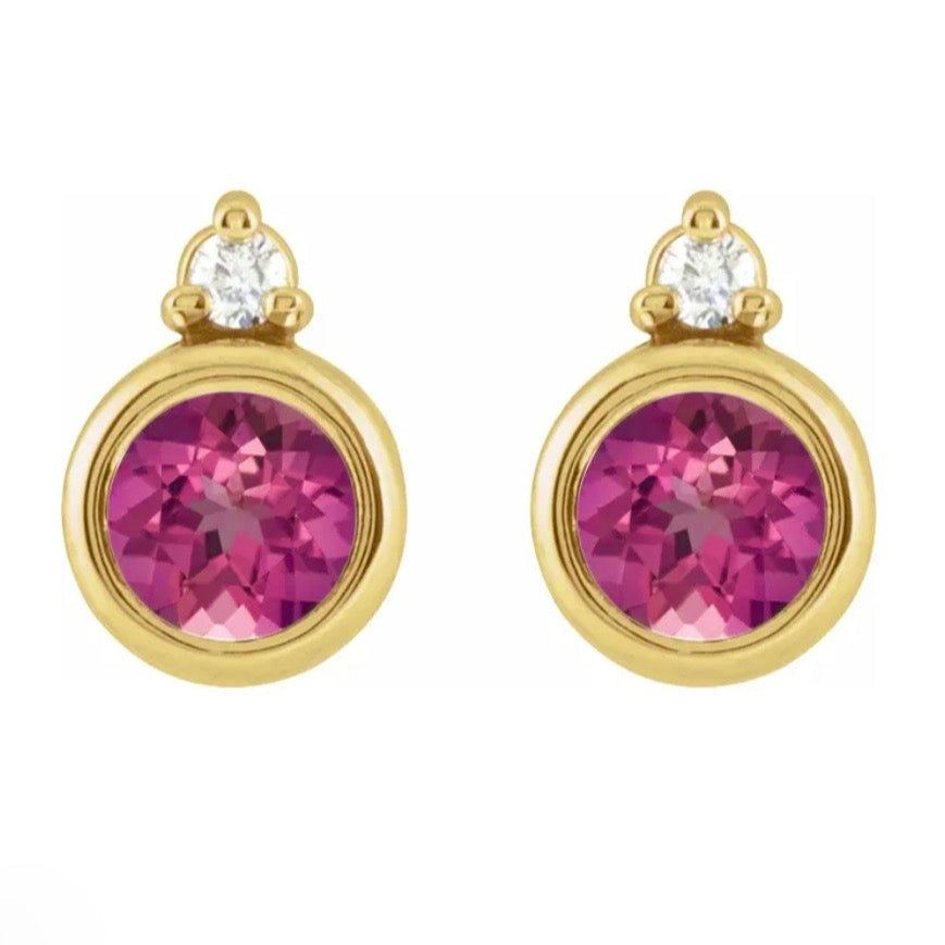 TICKLED PINK Tourmaline + Diamond Studs